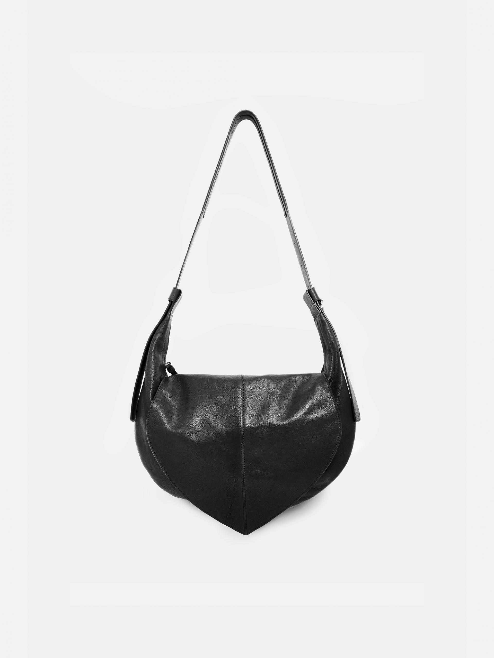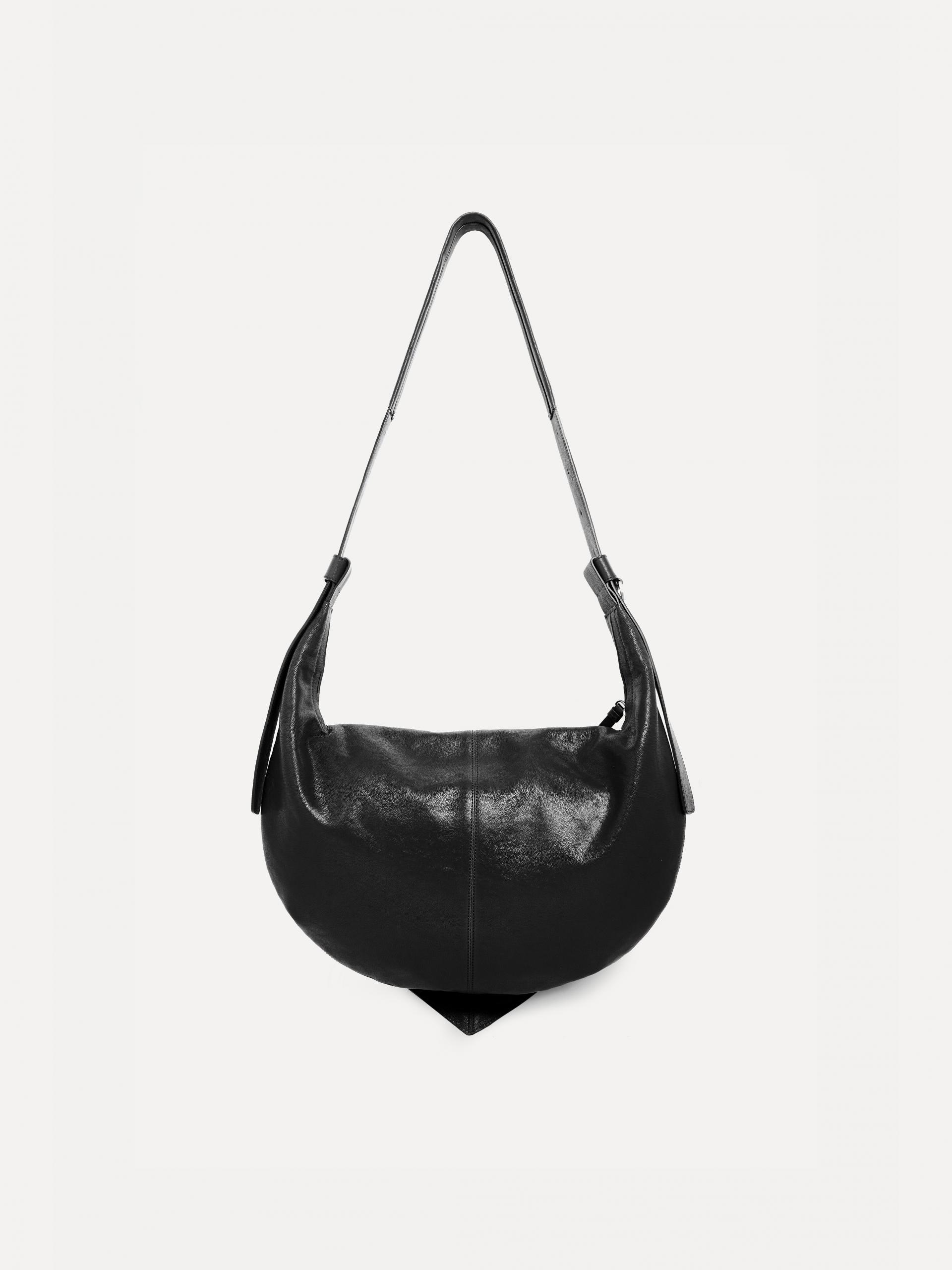 This medium-sized shoulder bag showcases the distinctive rough texture of goat leather. The shoulder strap is adjustable on both sides, allowing for versatile wearing styles. Inside, a square patch embossed with the brand logo and an internal pocket help organize your belongings, while the YKK zipper and silver-tone hardware ensure high-quality finishing. A D-ring detail on the side allows you to attach keyrings or small accessories for added accents. With its sleek silhouette and structured design, this bag naturally adds a sophisticated touch to various everyday looks. |